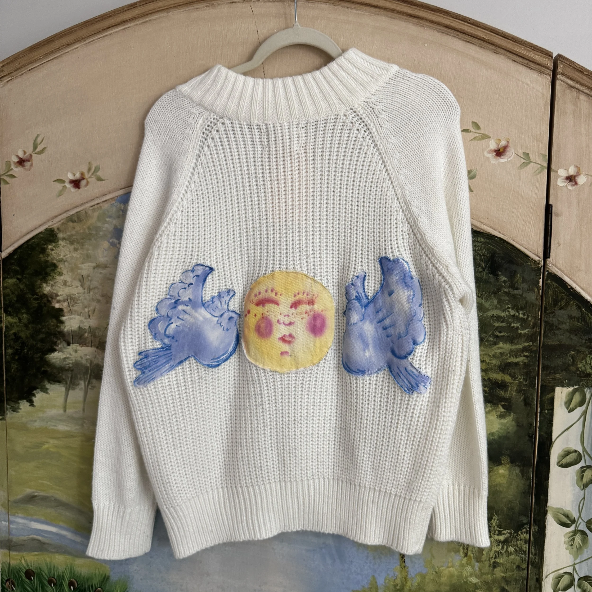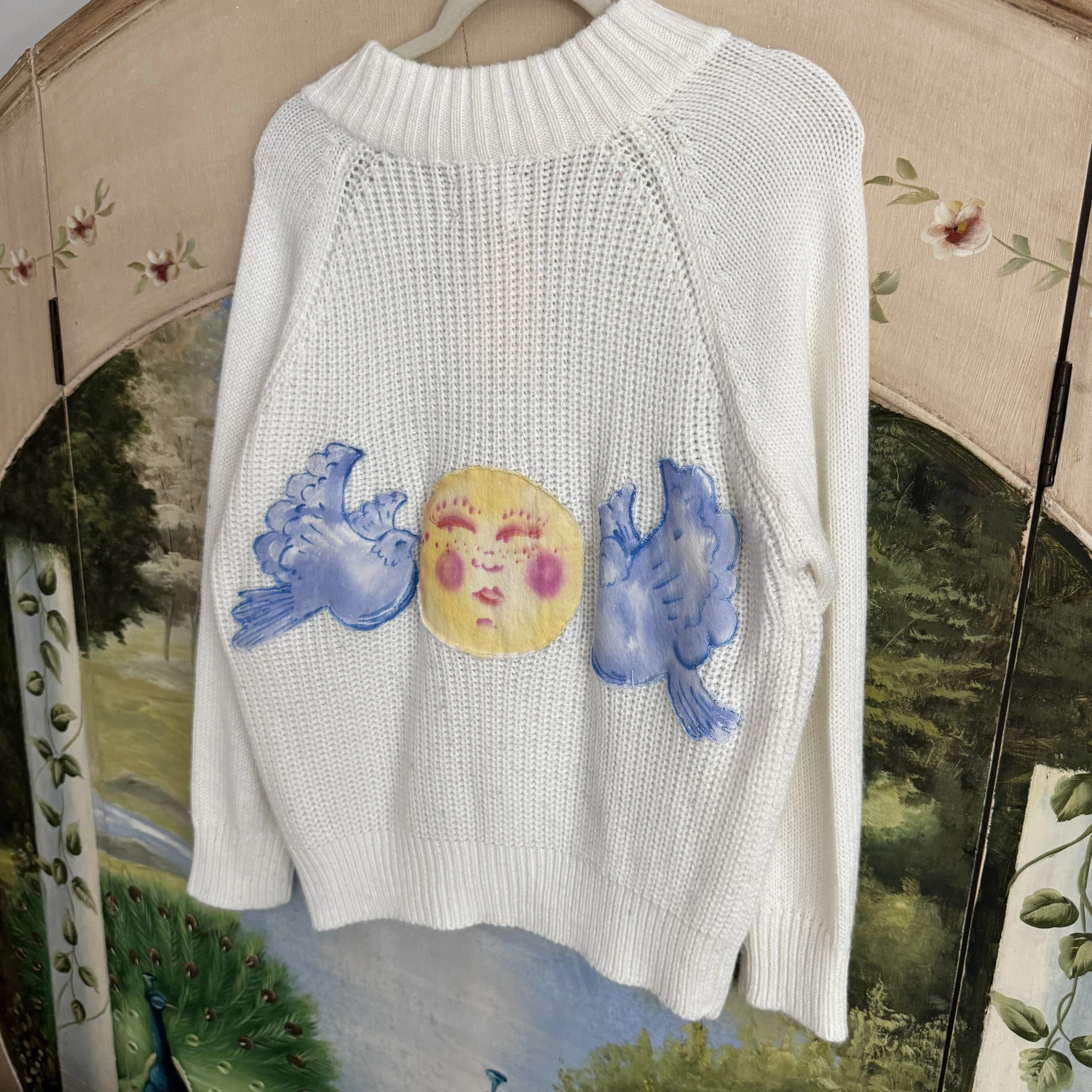 Since this item is hand-painted on vintage materials, please handle with extra care when you wear and wash: Hand wash cold, hang to dry.