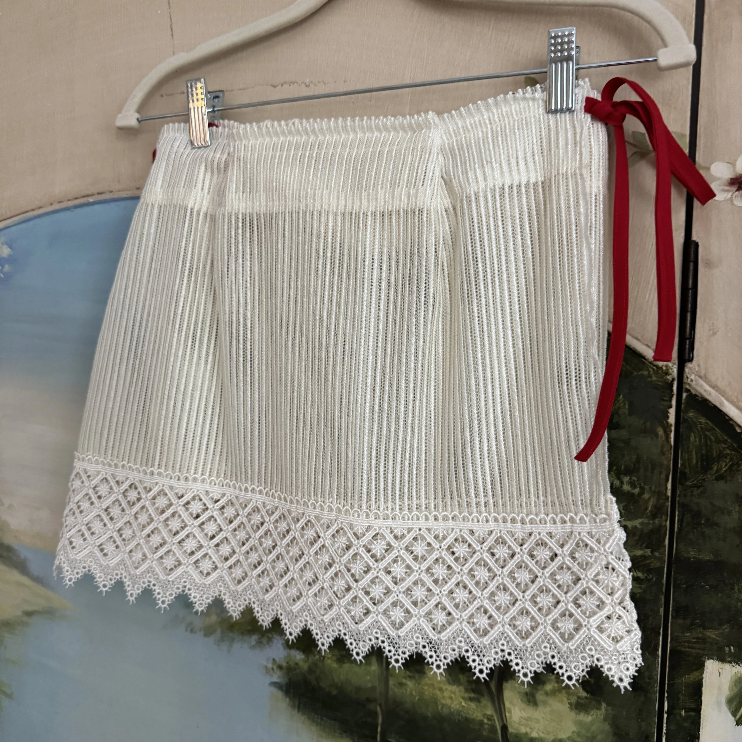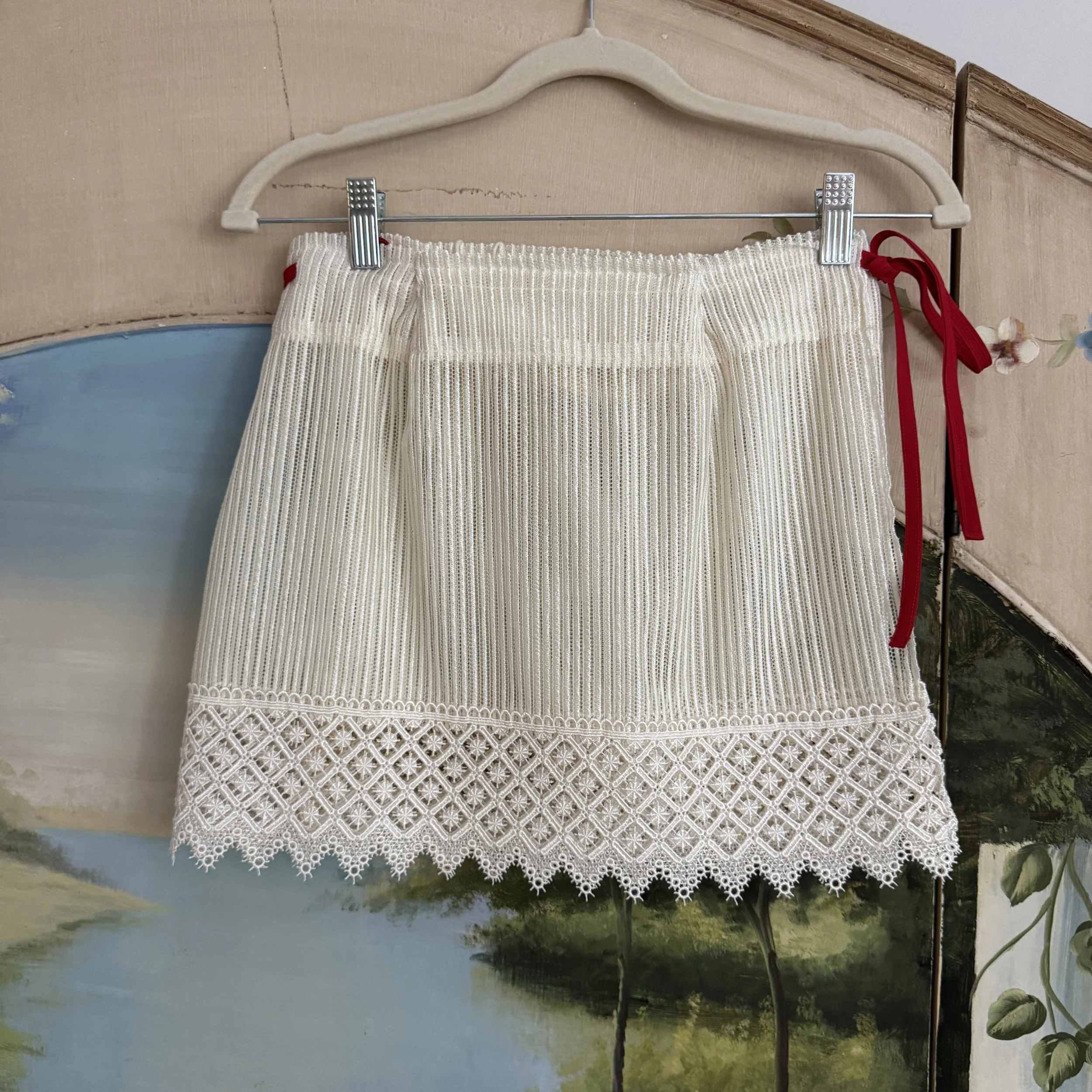 the Adeline skirt no. 2. This skirt was made from a vintage cotton floral embroidered curtains. It is fitted with elastic and it ties at both sides to fit you just how you like.