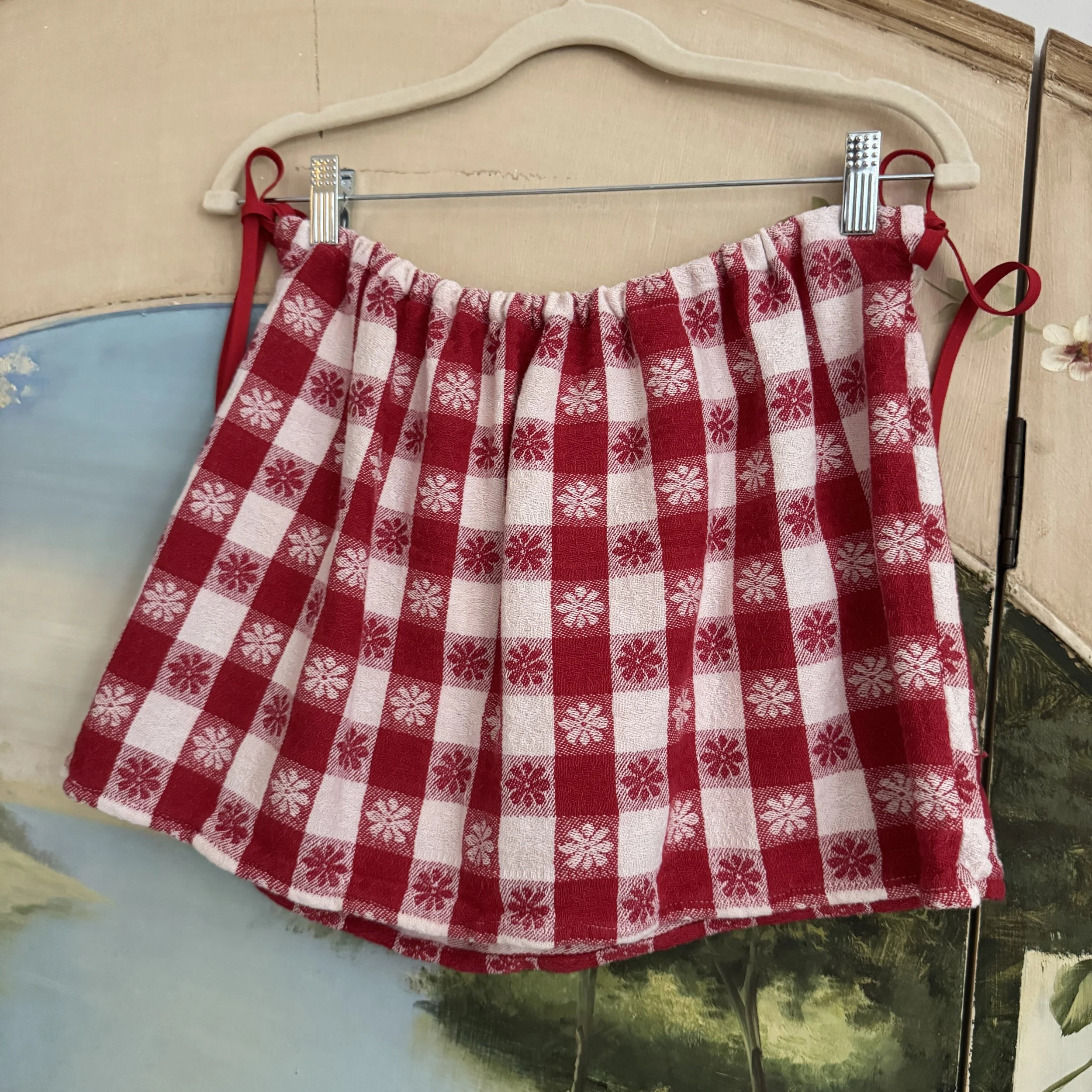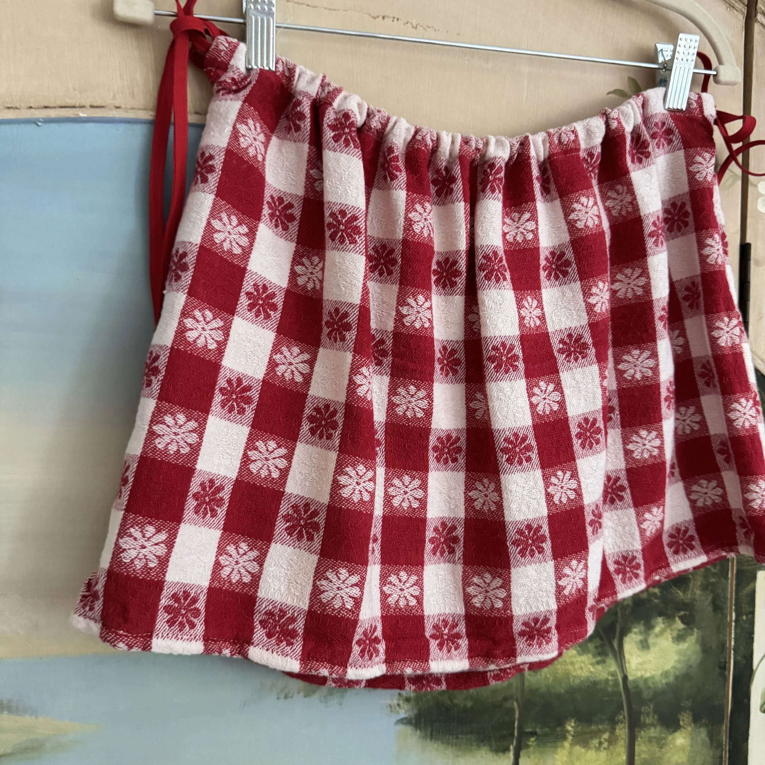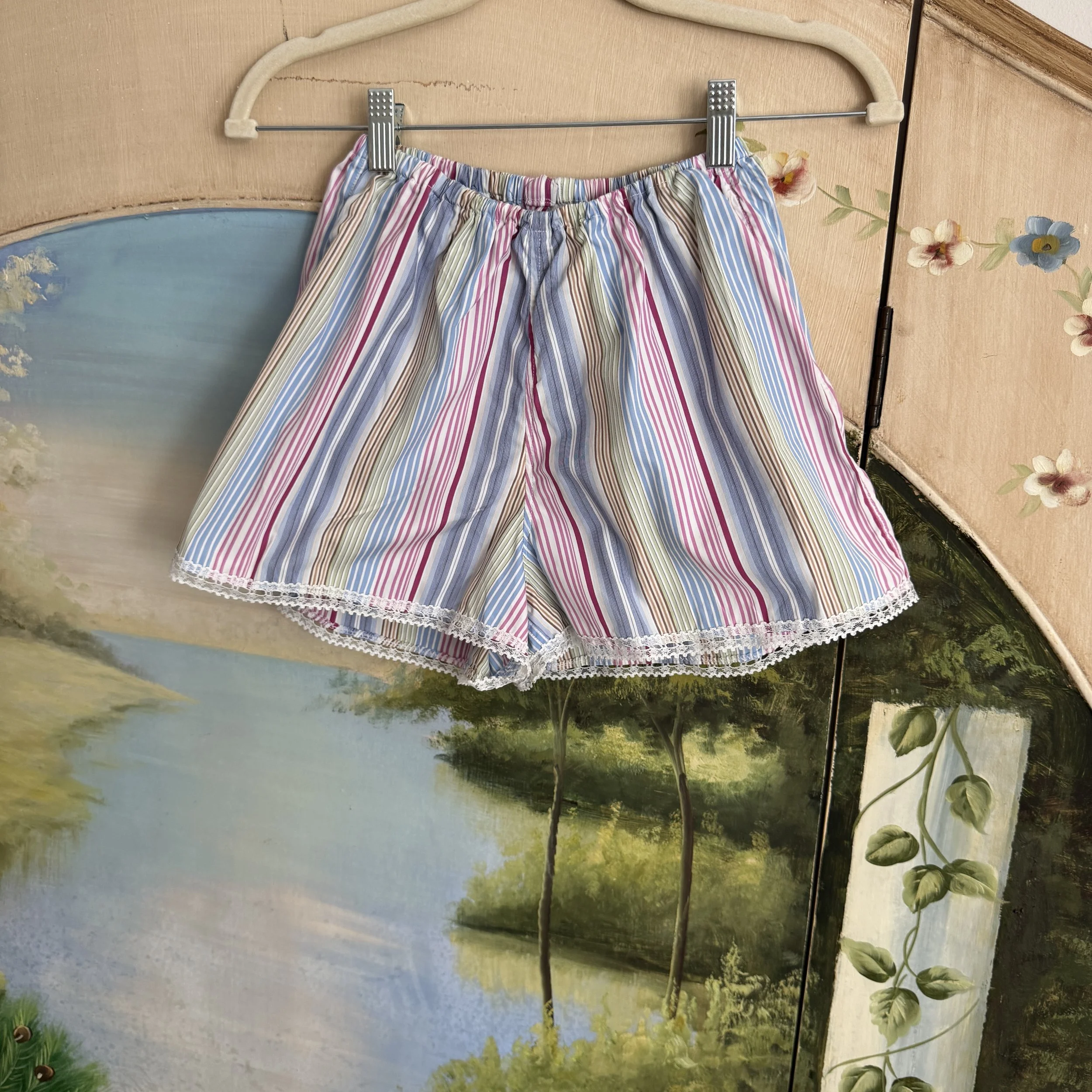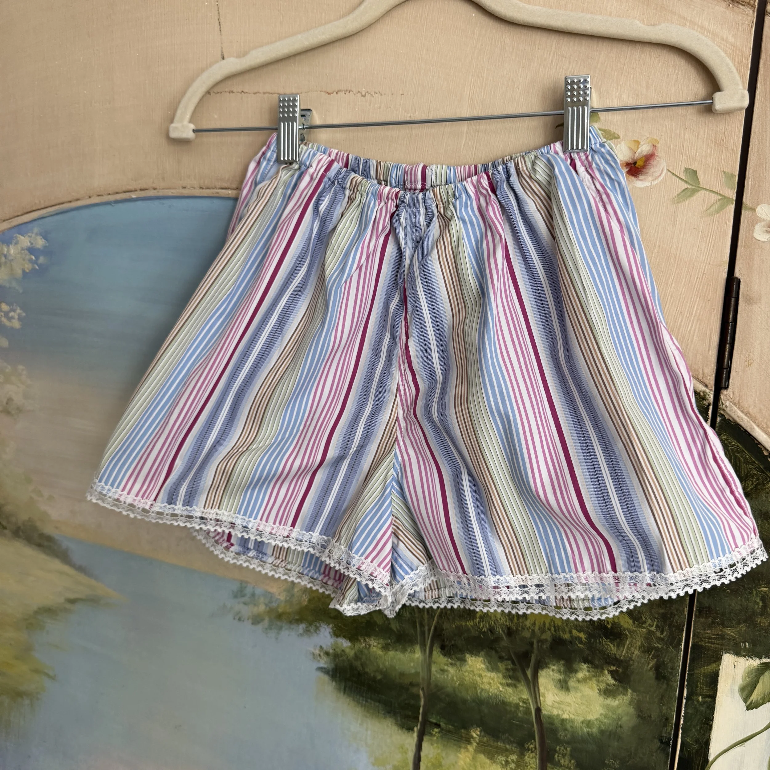 the Colette shorts [Cotswolds Toile]. These shorts were created from a vintage deadstock fabric and lace trim. They have a relaxed fit, a 1-inch waistband, and will fit a range of sizes. Pairs perfectly with the Suzanne top in the same fabric.